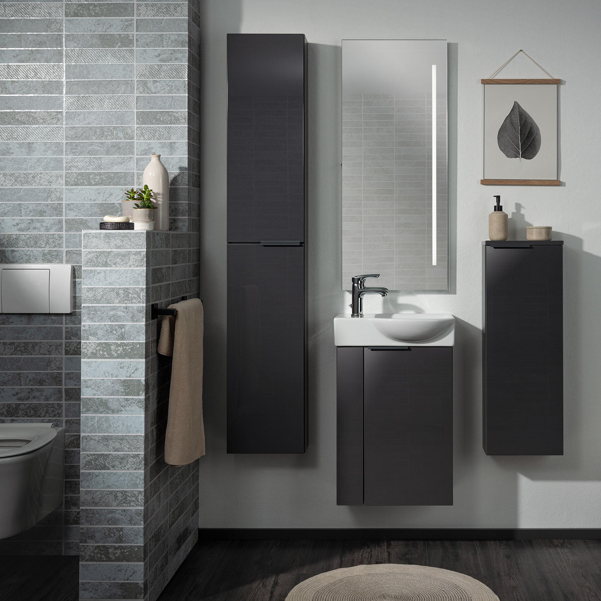 SBC Beckenunterschrank 45 - Front Anthrazit Hochglanz - Korpus Anthrazit matt - Rechtsanschlag