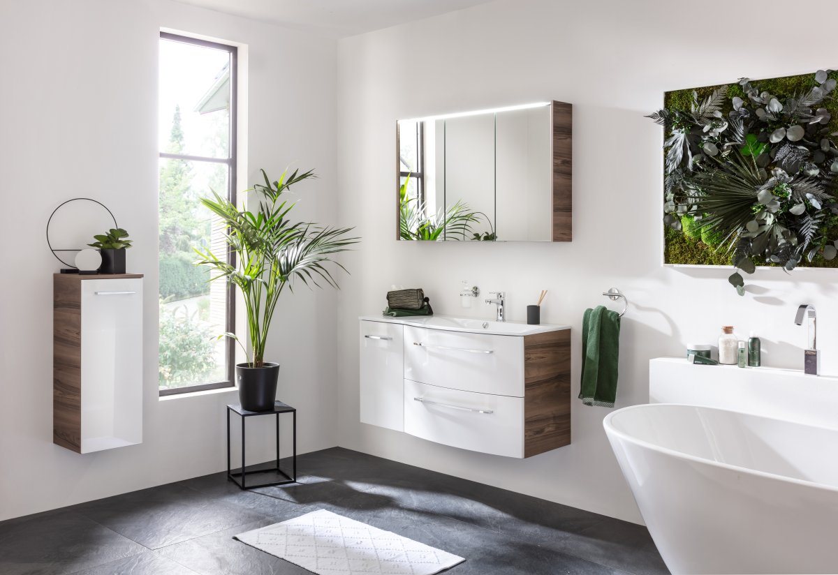 Eigenschaften "Verona Waschbeckenunterschrank links - Weiß Hochglanz - Nussbaum"