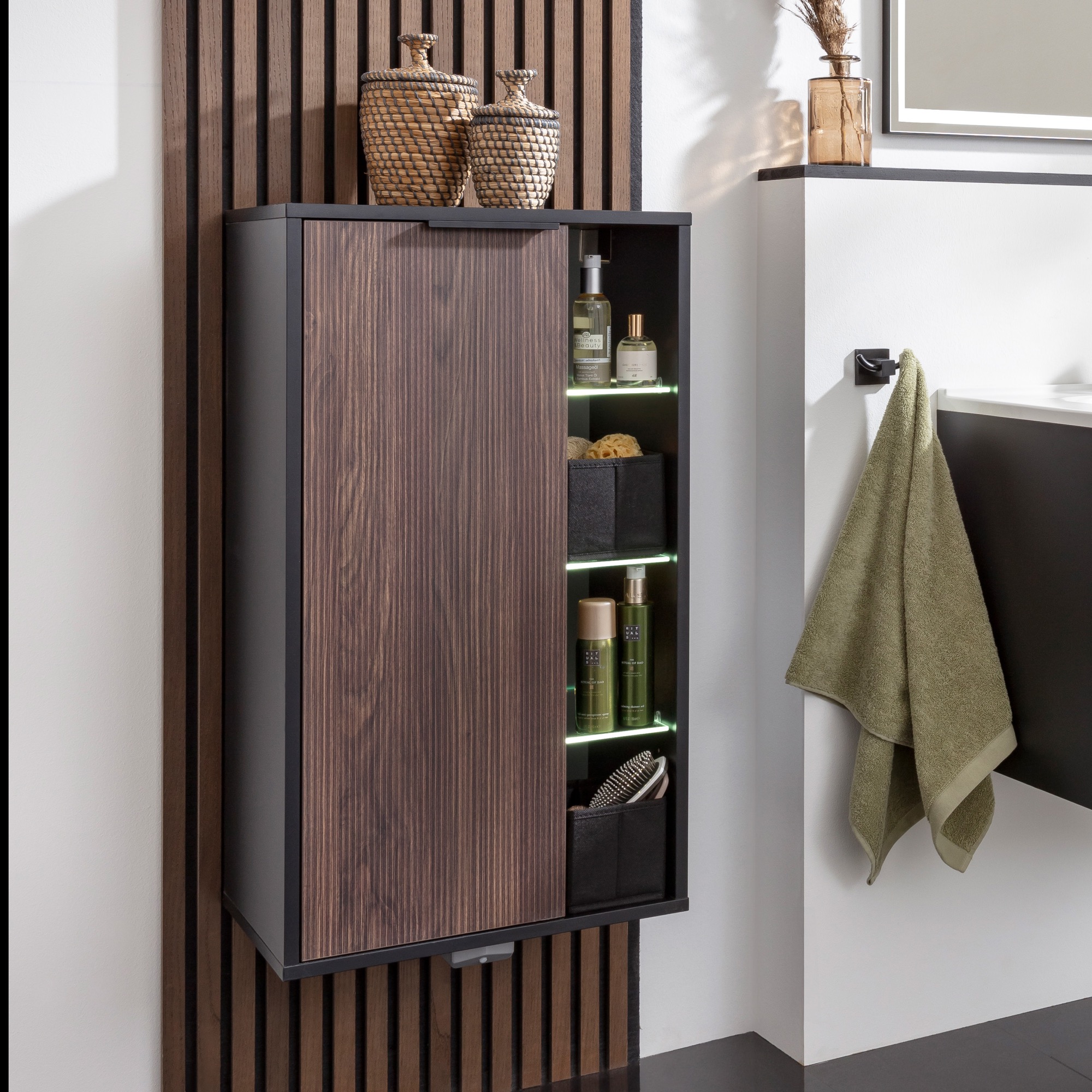 Erweitern Sie Ihre Badmöbel Sets mit weiteren Badezimmerschränken. Sie haben die freie Auswahl von Unterschränken, Hängeschränken, Midischränken und Hochschränken um in Ihrem Badezimmer noch mehr Stauraum zu schaffen. Die Badmöbel sind einzeln aber auch in Kombination mit den anderen Fackelmann Serien kombinierbar und auch mit den entsprechenden Front- und Korpus Dekoren perfekt aufeinander abgestimmt.