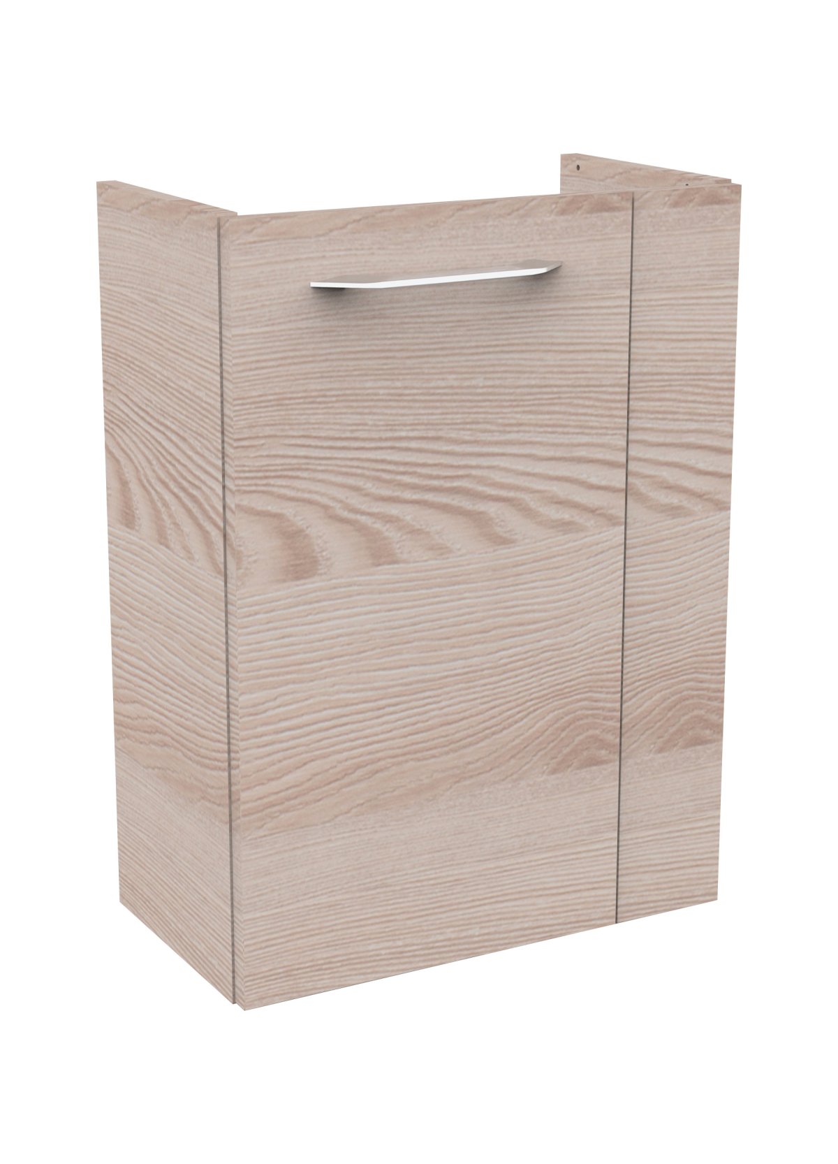 Die kompakte Größe des Waschtischunterschranks mit einer Breite von 455 mm macht ihn ideal für räumlich begrenzte Badezimmer. Trotz seiner geringen Abmessungen bietet er ausreichend Stauraum für Ihre Badutensilien. Die Front und der Korpus des Schranks sind in der ansprechenden Holzoptik Alaska Esche gehalten, die Wärme und Natur ins Badezimmer bringt.