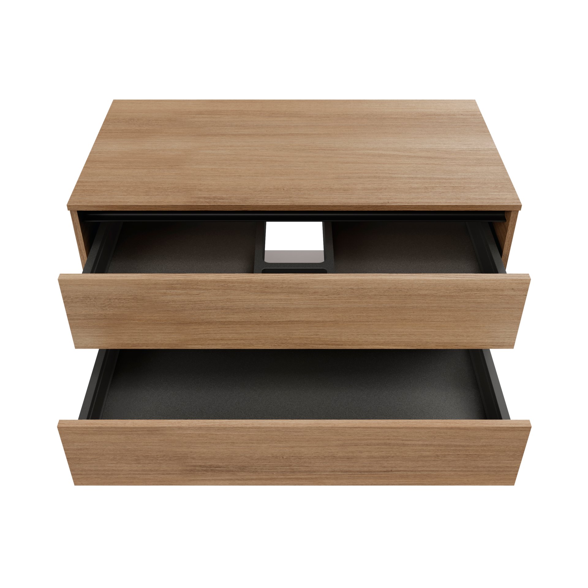 Der Schrank kommt vormontiert und ist zur hängenden Montage vorgesehen, was die Installation erleichtert und für eine schwebende Optik sorgt. Ausgestattet mit zwei großzügigen Schubladen, bietet der Waschtischunterschrank reichlich Stauraum für Ihre Badezimmerutensilien. Beide Schubladen sind mit einem Softclose-System ausgestattet, das für ein sanftes und leises Schließen sorgt.